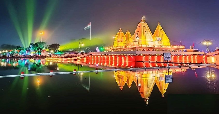 Within the sarovar, a sacred shrine dedicated to Lord Shiva is accessible through a tiny bridge. Bathing in this sarovar, according to texts, increases the purity of doing the ‘ashvamedh yajna’. The pool is particularly beautiful during the Gita Jayanti celebrations, which take place each year in the last week of November and early December and include a ‘deep daan’ ceremony of floating lamps in water and Aarti. This is also the time of year when migratory birds arrive at the sarovar from distant lands. The nearby sights include the Birla Gita Mandir and Baba Nath’s haveli and temple.
